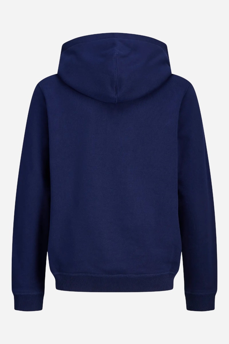 En komfortabel og stilren hoodie til drenge, lavet i blød sweatkvalitet. Den har et minimalistisk, lille broderet skrift over brystet, som giver et cool og moderne udtryk. Perfekt til hverdagsbrug – både til skole, sport og afslapning
